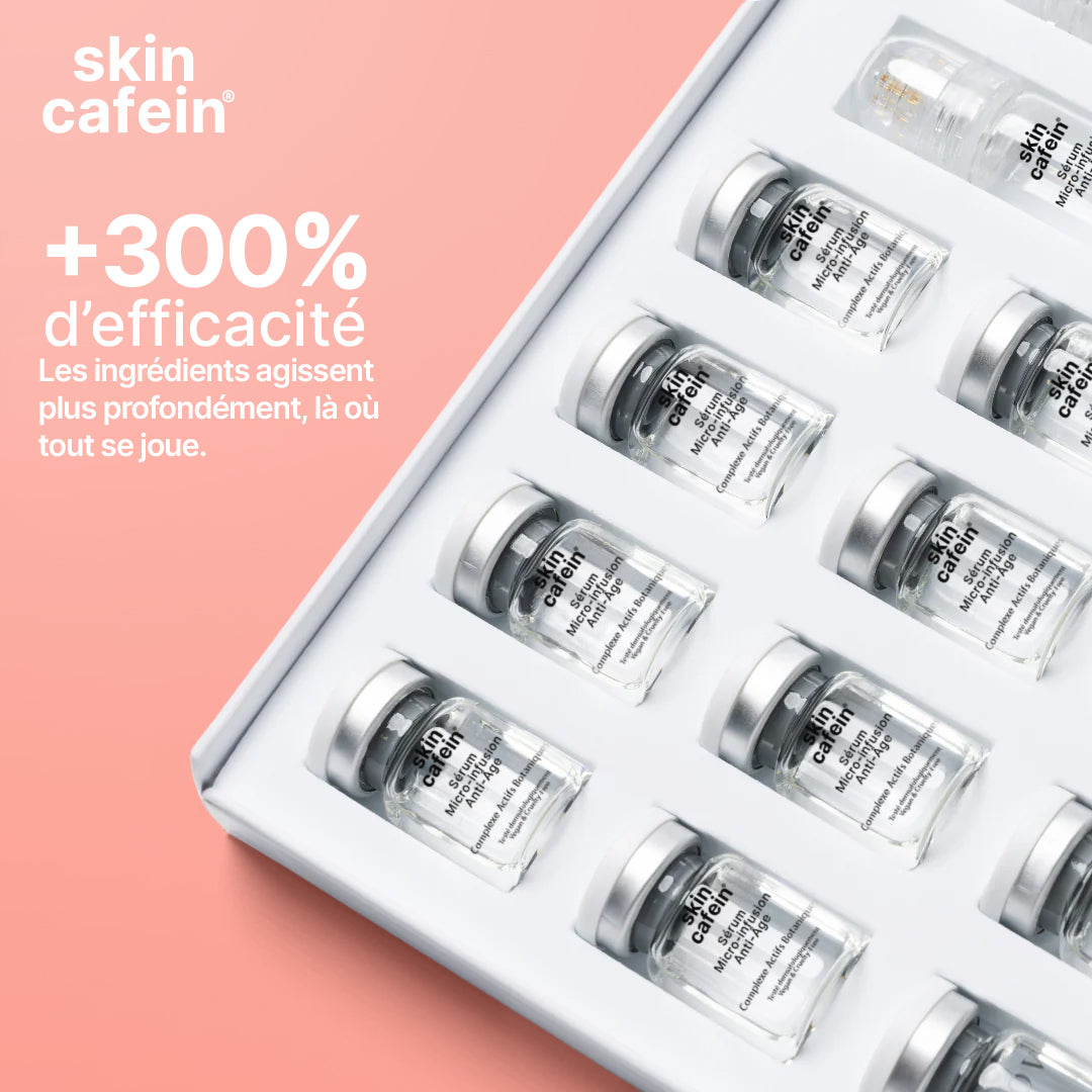 La micro-infusion crée de micro-canaux à la surface de la peau, permettant une pénétration accrue des actifs anti-âge (acide hyaluronique, peptides, caféine…). Elle stimule aussi la micro-circulation et les mécanismes naturels de régénération.